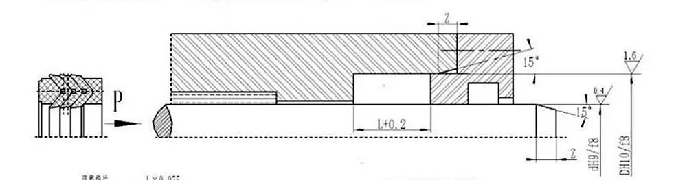 ভি-আকৃতির সীলগুলি সর্বোত্তম সিলিং এবং ঘর্ষণ অর্জনের জন্য গ্যাসকেট সামঞ্জস্য করে অক্ষীয় মাত্রায় সামঞ্জস্য করা যেতে পারে। দীর্ঘমেয়াদী অপারেশনের পরে প্রাথমিক পরিধান অক্ষীয় মাত্রা সামঞ্জস্য করে বাড়ানো যেতে পারে। সামঞ্জস্যযোগ্য সীল গহ্বরের অক্ষীয় মাত্রার জন্য প্রস্তাবিত নকশা হল 1.025L, যার সমন্বয় পরিসীমা 7.5%L।