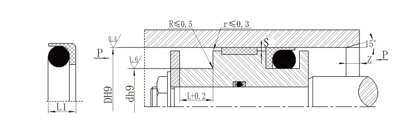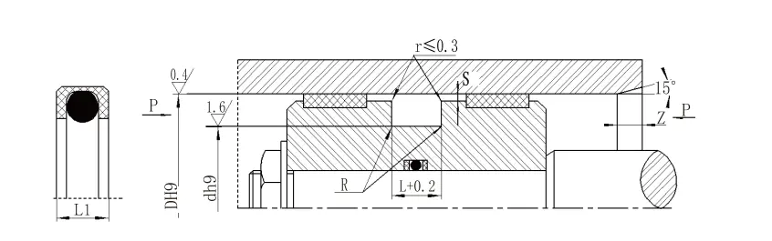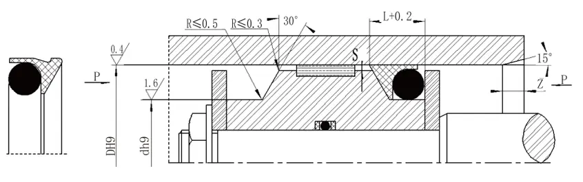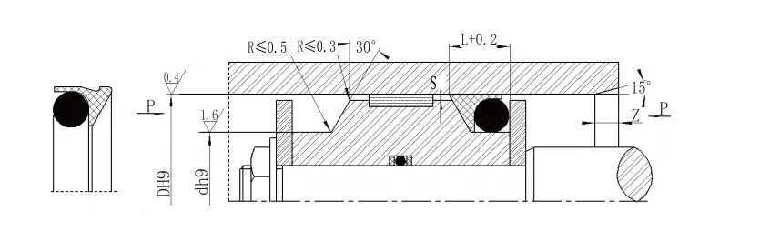 3। চাপের জন্য> 40 এমপিএর জন্য, সিলের মূল অঞ্চলটি H8/F8 ফিট সহনশীলতা ব্যবহার করে। |
