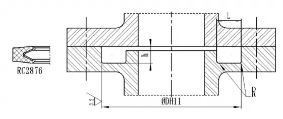 RC2876-B-40-PTFE4+R02: ভিতরের চাপের খাঁজ বাইরের ব্যাস 40, সিলিং রিং উপাদান হল PTFE4, ম্যাচিং ও-রিং ফ্লুরোরাবার দিয়ে তৈরি।